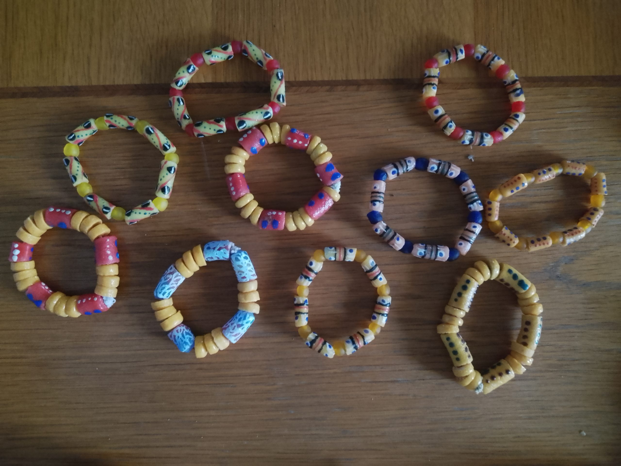 Order now 100 pcs of handmade recycled glass bracelets.